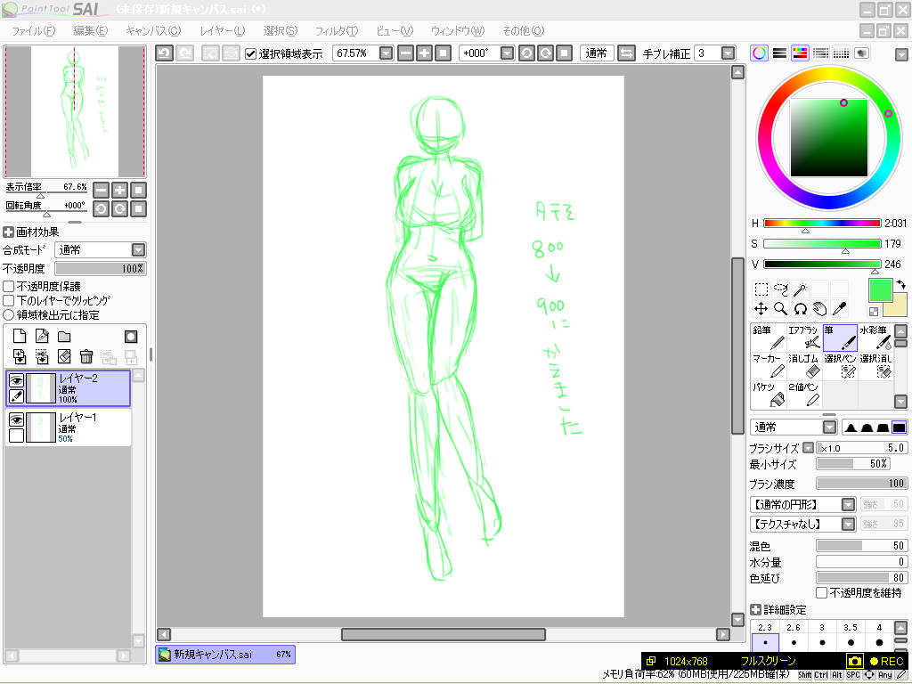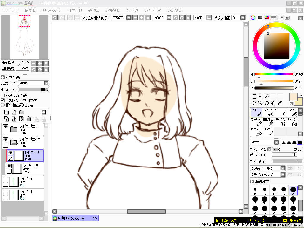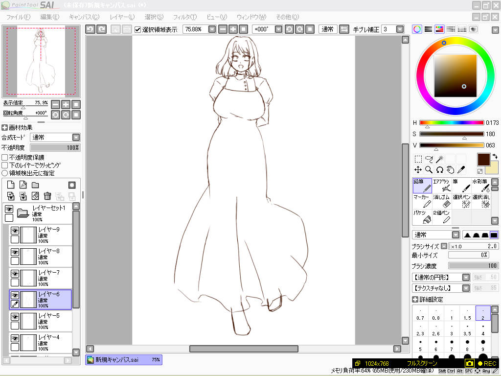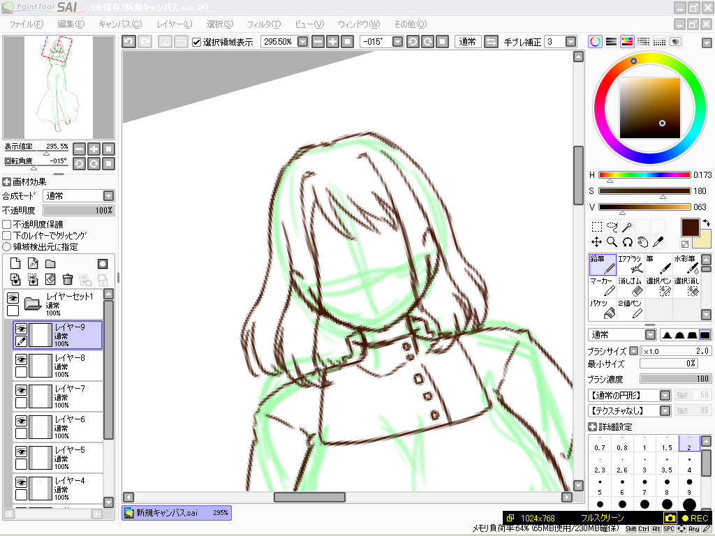 2時間くらいで描いたのでハイライトは顔部分だけです^p^ 1.アタリ