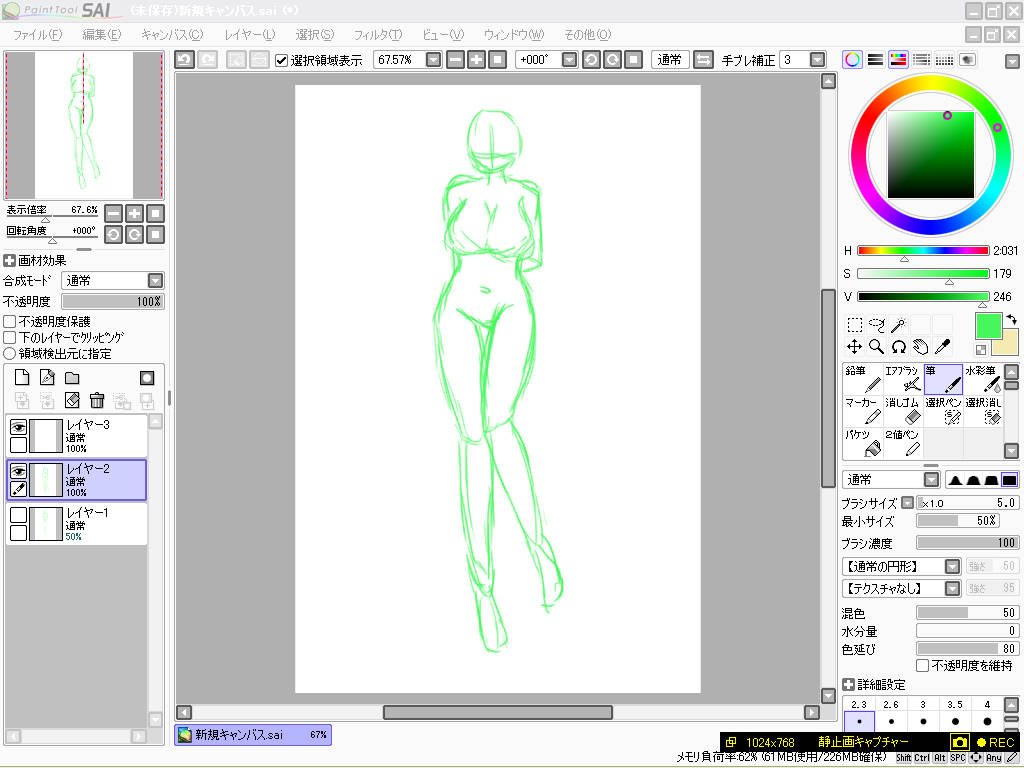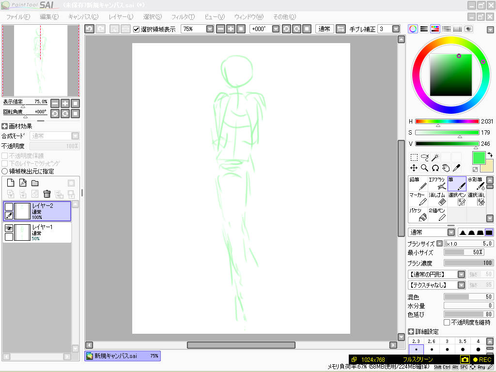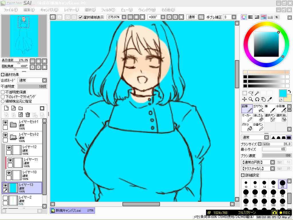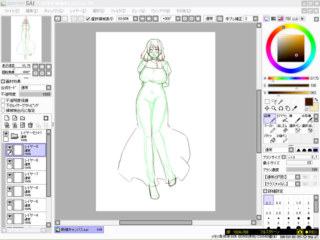 2時間くらいで描いたのでハイライトは顔部分だけです^p^ 1.アタリ